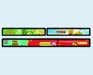 針對新零售無人貨架、商超貨架等設計的條形液晶屏顯示方案,將原有貨架上的價格標簽替換成條形液晶屏,在商品顯示價格的同時還可以顯示產品廣告、促銷信息、二維碼等,同時支持遠程更新,提升消費者的購物體驗和商品的曝光量。